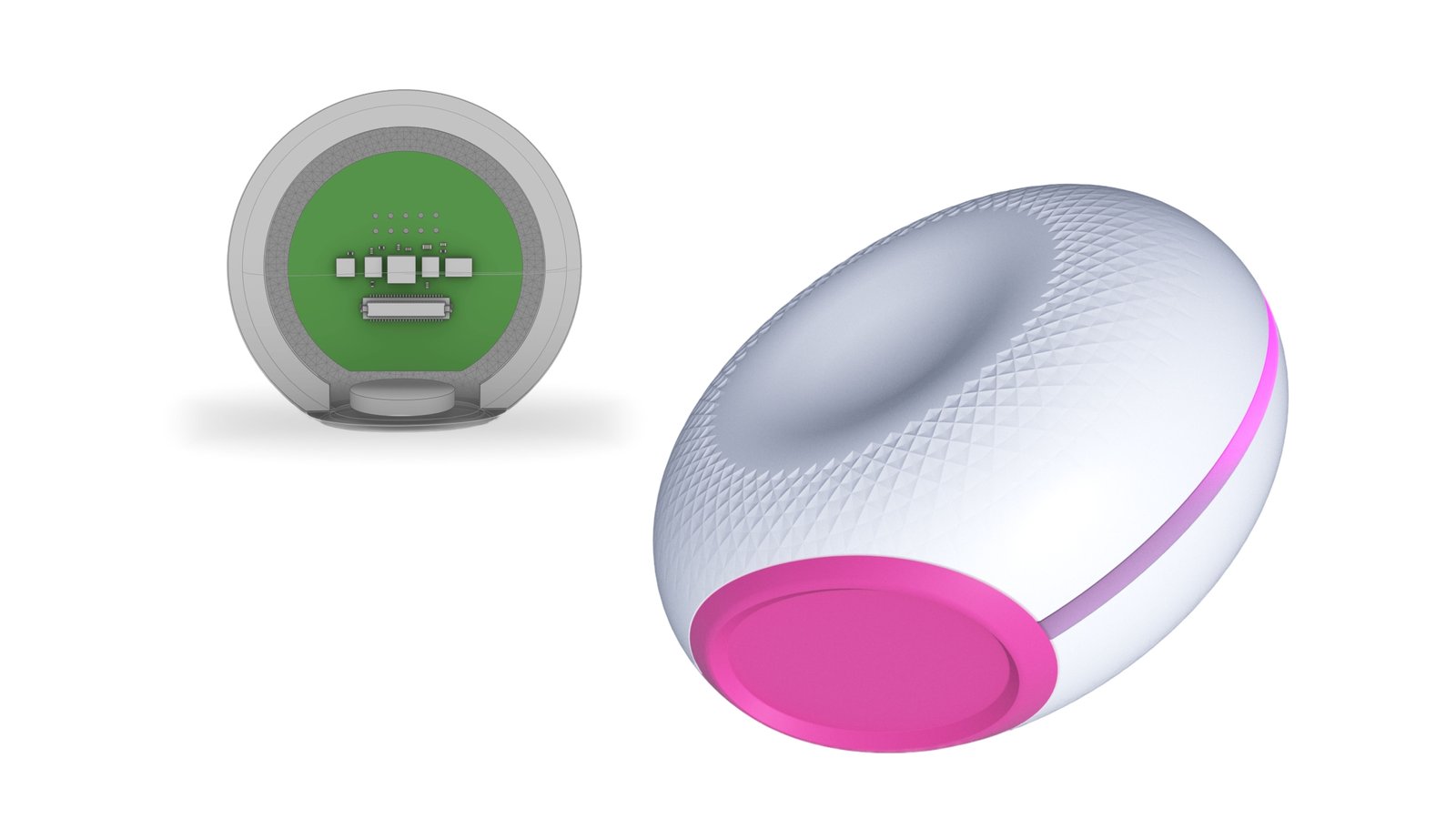 The Orb is designed for easy use and maintenance. The curved housing and textured silicone surface promote easy cleaning and give a comfortable, secure grip. The aesthetic design features an elegant interface comprising a power button integrated into the device’s skin and a simple light ring that provides status updates and guides users through the monitoring process.