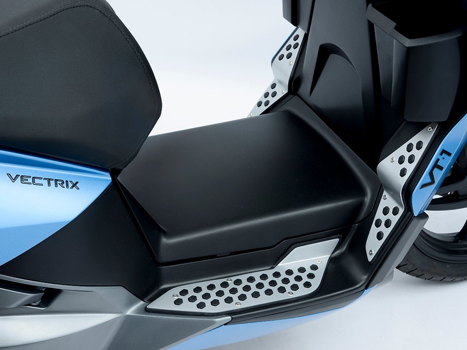 The VT-1’s instrumentation display is smart, colorful, and animated. It was methodically designed to give the rider the right information at the right time and at the right size. It’s also capable of a deep dive into many other facets of the digital scooter, giving the operator a full read on all systems safely.